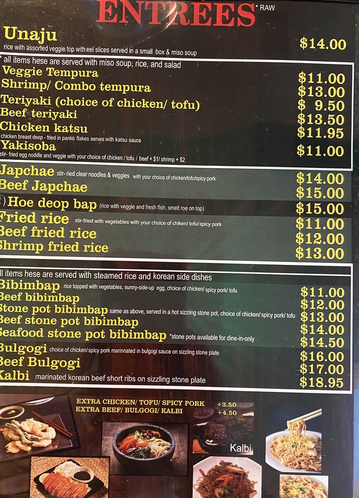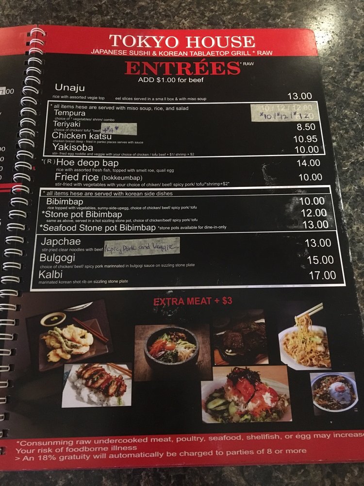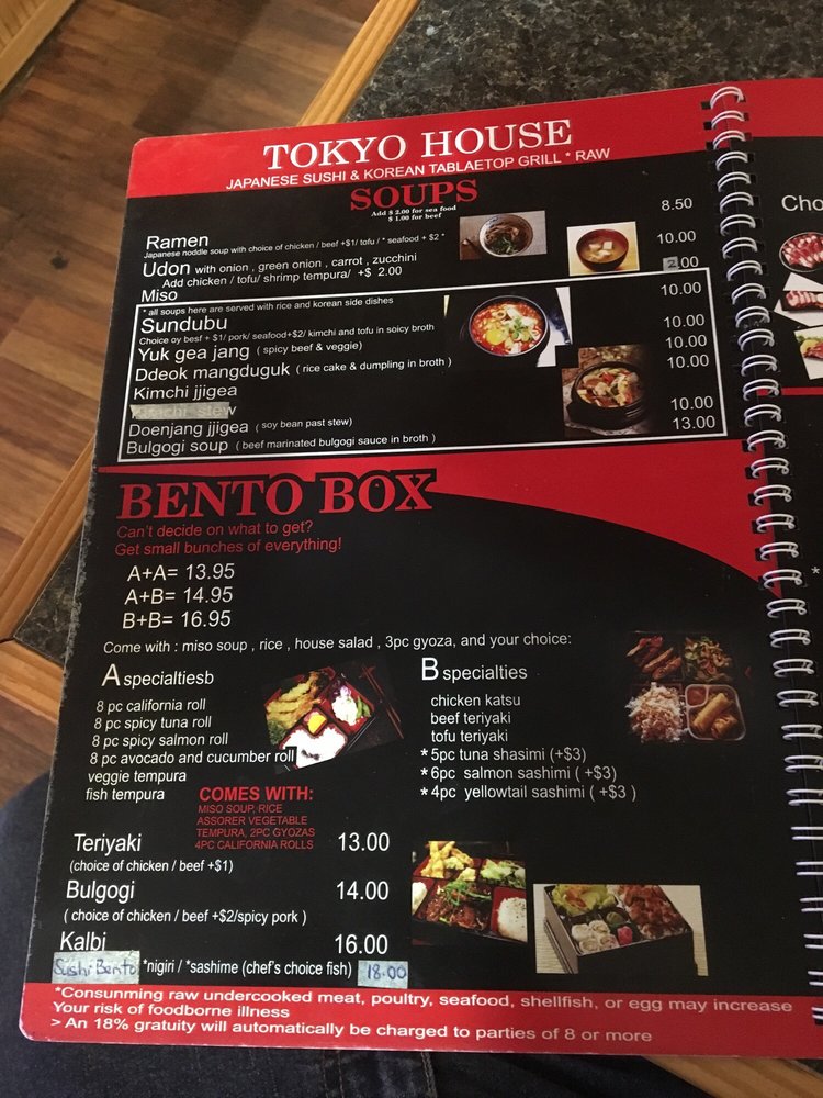 Tokyo House, located in Bellingham, WA, offers a diverse menu with a focus on Asian cuisine. The restaurant provides a wide range of options, from appetizers like Gyoza and Calamari Tempura to desserts such as Sesame Balls and Mochi Ice Cream. Customers praise the quality of the food and the friendly service. The Bento box and Korean BBQ are standout choices, with generous portions and reasonable prices. The restaurant's recent menu updates have introduced new dishes like Korean beef bulgogi soup, though some regulars note slight price increases. Overall, Tokyo House is a welcoming spot for delicious Asian dishes, with a spacious dining area, catering options, and an extensive drink selection. Whether you're a first-time visitor or a loyal customer, Tokyo House promises a satisfying dining experience with flavors that will keep you coming back for more.